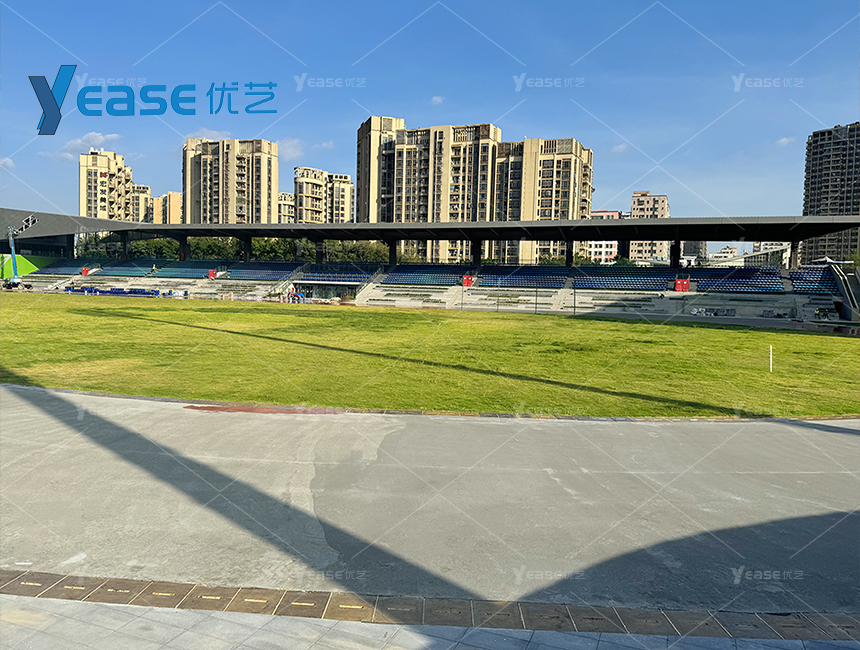 坚固耐用的钢结构看台系统,满足户外场馆长期使用与高承载要求。